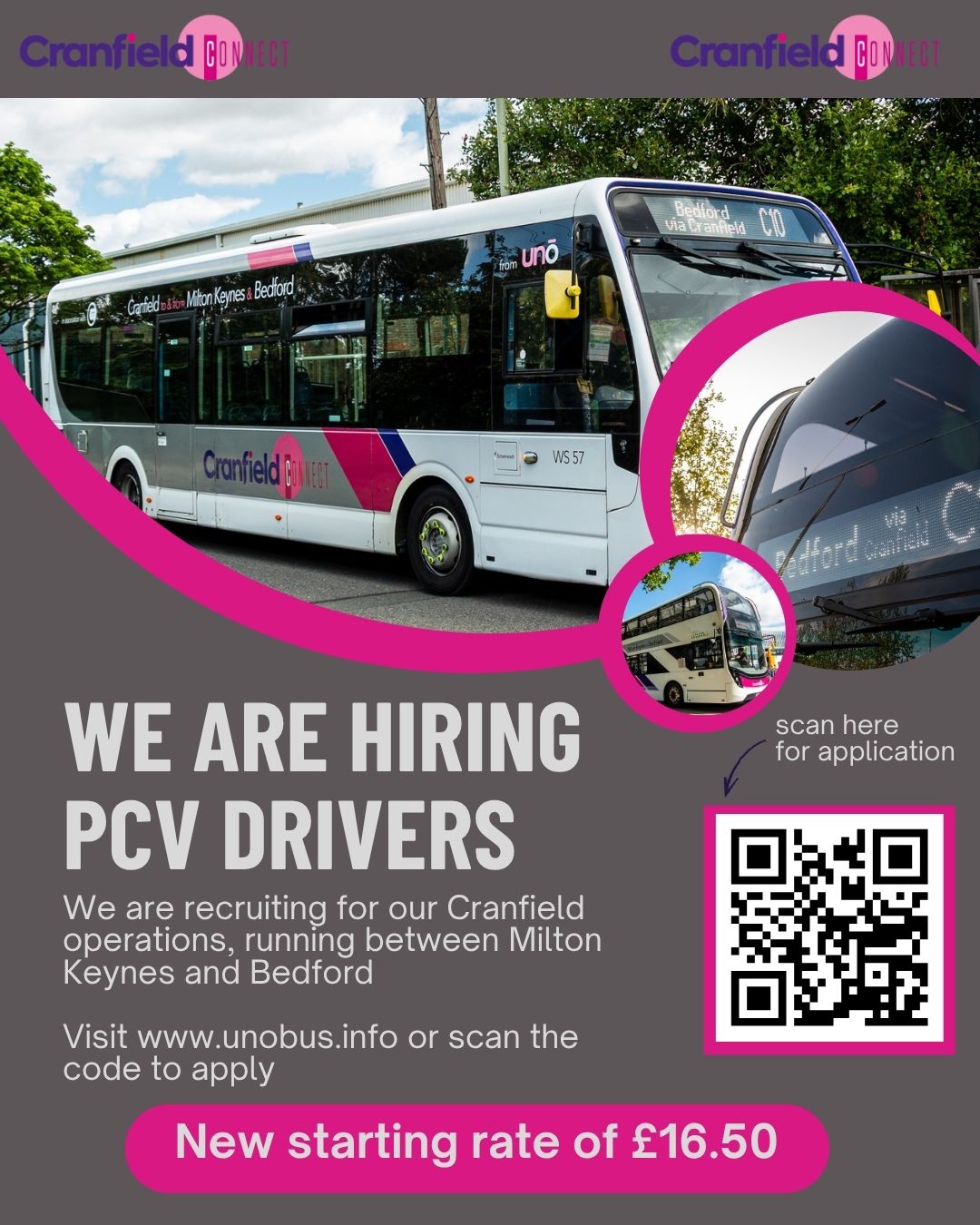 We are recruiting PCV drivers for our Cranfield operations. We run between Milton Keynes and Bedford, serving villages along the way as well as Cranfield University. With our new starting rate of £16.50, there is no better time than now to join our team!!